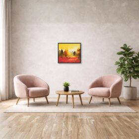 Autumn Forest Path Wall Frame – Warm Yellow & Red Landscape Art (SICR00123)