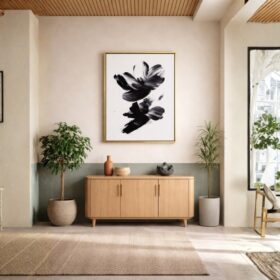 Black & White Abstract Floral Laminated Wall Frame (SICR00127)