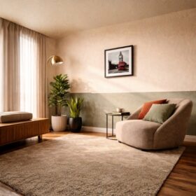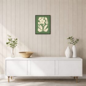 Green Botanical Floral Wall Art – Minimalist Cream Flower Design (SICR00138)