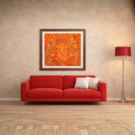 Lord Ganesha Kerala Mural Art Laminated Frame (SICR00158)