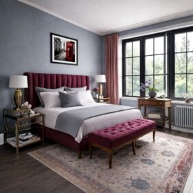 Red Vintage Car Street Photography Framed Wall Art (SICR00198)